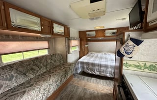 The RV owners determine what is available with the rental, such as bedding and utensils. Renters should review the RV listing description or ask the owner for more information. Storage options for personal items can vary by RV, so renters should check with the owner for available storage space.