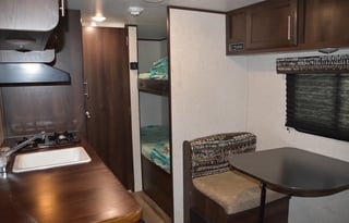 The RV owners determine what is available with the rental, such as bedding and utensils. Renters should review the RV listing description or ask the owner for more information. Storage options for personal items can vary by RV, so renters should check with the owner for available storage space.