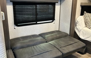 The RV owners determine what is available with the rental, such as bedding and utensils. Renters should review the RV listing description or ask the owner for more information. Storage options for personal items can vary by RV, so renters should check with the owner for available storage space.