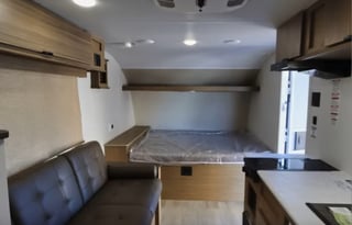 The RV owners determine what is available with the rental, such as bedding and utensils. Renters should review the RV listing description or ask the owner for more information. Storage options for personal items can vary by RV, so renters should check with the owner for available storage space.