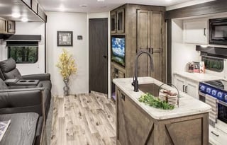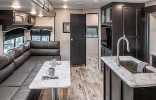 When towing a travel trailer RV rental, it's crucial to be aware of its increased length and weight. Take wider turns, allow for extra braking distance, and maintain a safe and steady speed. Be cautious when changing lanes, as the trailer may affect your vehicle's stability. Familiarize yourself with local traffic laws and any specific regulations regarding towing trailers in your area.
