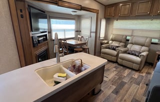 Most 5th wheel rental RVs come with a equipped kitchen, check the listing details or ask the owner for specific items. Renters may choose to bring additional cooking appliances or equipment if they desire.