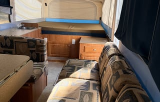 Many RVshare owners will provide bedding and linens for the popup camper rental, but you can certainly bring your own if you prefer. There are typically storage compartments and cubbies located throughout the interior of the camper rental for storing personal items.