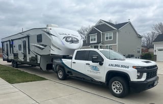 What kind of towing vehicle do I need to rent a toy hauler, and are there any special licensing or certification requirements for operating this vehicle in Shrewsbury, MO?