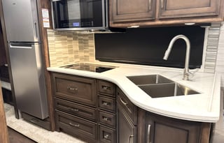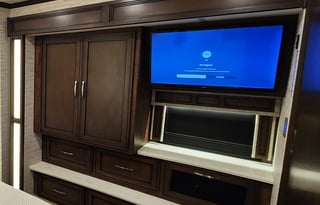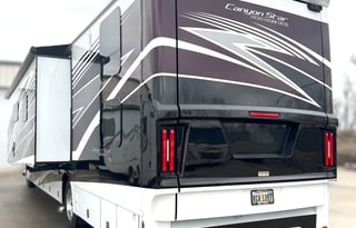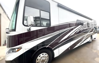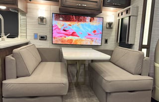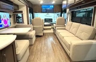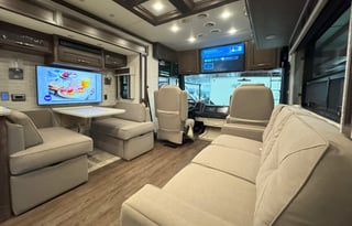 At RVshare, a luxury RV rental is classified as a luxury motorhome with plentiful space and amenities such as full kitchens and bathrooms, multiple sleeping areas, and advanced sound systems or outdoor spaces such as outdoor kitchens or entertainment areas.