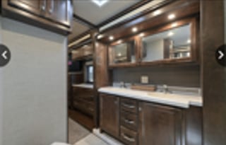 At RVshare, a luxury RV rental is classified as a luxury motorhome with plentiful space and amenities such as full kitchens and bathrooms, multiple sleeping areas, and advanced sound systems or outdoor spaces such as outdoor kitchens or entertainment areas.