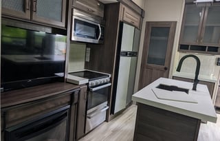 Most 5th wheel rental RVs come with a equipped kitchen, check the listing details or ask the owner for specific items. Renters may choose to bring additional cooking appliances or equipment if they desire.
