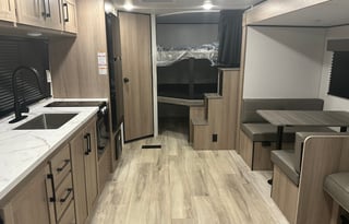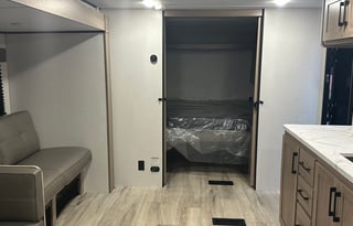 The RV owners determine what is available with the rental, such as bedding and utensils. Renters should review the RV listing description or ask the owner for more information. Storage options for personal items can vary by RV, so renters should check with the owner for available storage space.