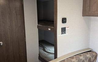 The RV owners determine what is available with the rental, such as bedding and utensils. Renters should review the RV listing description or ask the owner for more information. Storage options for personal items can vary by RV, so renters should check with the owner for available storage space.