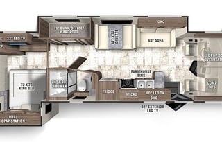 At RVshare, a luxury RV rental is classified as a luxury motorhome with plentiful space and amenities such as full kitchens and bathrooms, multiple sleeping areas, and advanced sound systems or outdoor spaces such as outdoor kitchens or entertainment areas.