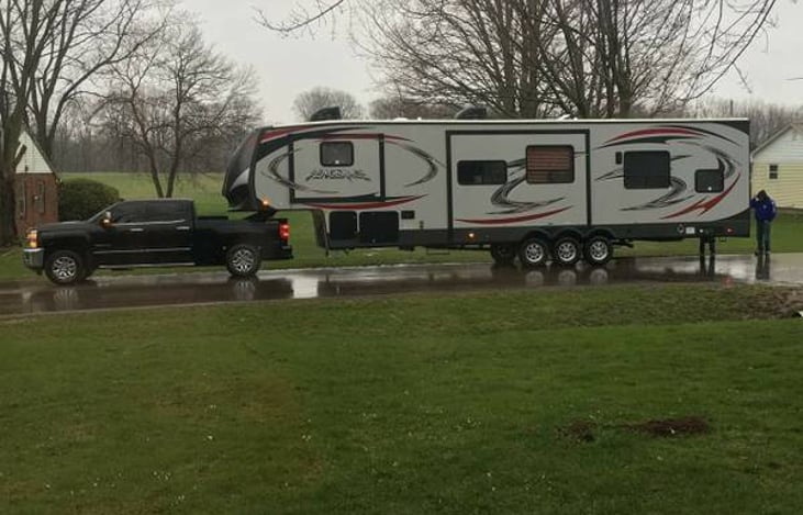 We have a 2016 Forest River Vengeance Toy Hauler for rent. This RV is a 42' long fifth-wheel that sleeps 8-10 people. With 2 air conditioners, 1 full & 1 half bathroom, full kitchen with stovetop and convection oven, 40" LCD TV, radio and outdoor speakers, 12' garage to haul up to 6 dirt bikes, 2-3 ATVs, or a few road bikes.