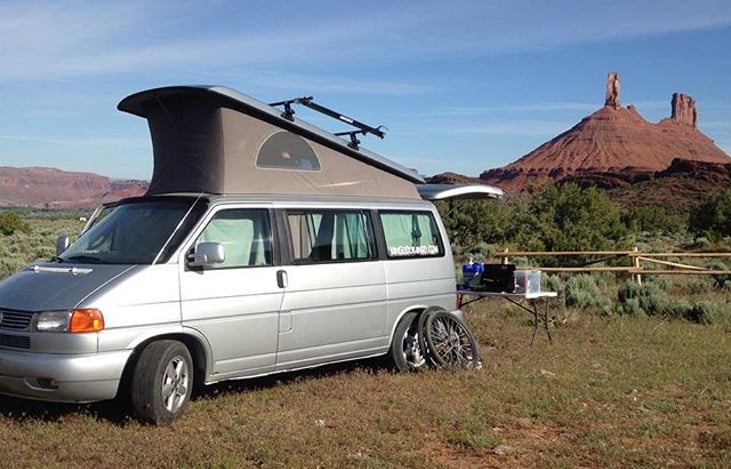 Sterling is a 2002 Volkswagen Eurovan MV. With her V6 engine she'll get you up the passes without hesitation. Sterling comes with two beds - one in the pop-top loft area and the other in the main cabin. There's an auxilliary cable for your i-Pod/Phone and a stereo system that will keep you jammin' all the way to your destination.