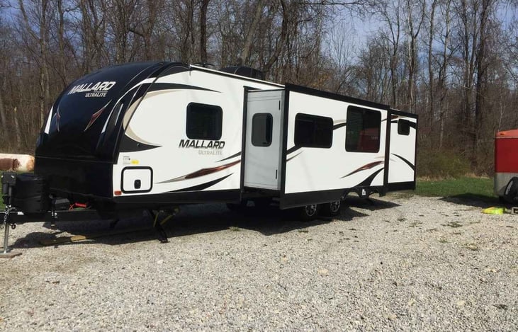 35 foot Heartland Mallard m32 bunkhouse. 6900 lbs. This is a wonderful easy to operate trailer that is perfect for an entire family. Comes with an outside kitchen with refridgerator and tv. 2 32 inch flat screens inside, one in front pivots so you can watch from the living area or the master bedroom, and one in the kids bunk room. 2 slides, plenty of room for everyone.