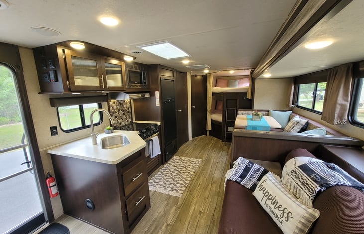 First Natalie and Kevin are very easy going and great to work with. The RV was very clean and had everything that we needed and then some. The queen bed is very comfortable. My 17-year-old son said the bed he slept in was very comfortable as well. Picking up and dropping off was a very easy. They have three RVs for rent I would absolutely rent any of them!!!