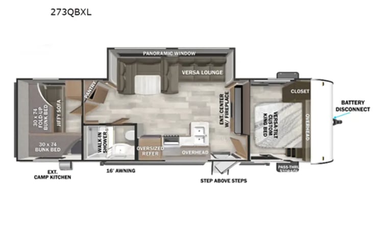 Pack up the kids and hit the road with our 2021 Forest River Wildwood 273QBXL. It's perfect getaway on wheels! This cozy, spacious travel trailer comfortably sleeps up to 10, featuring a private queen bedroom, roomy bunkhouse for the kiddos, convertible dinette, and a sofa bed.