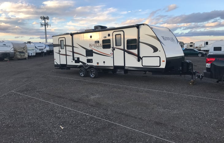 2018 Kodiak Express Ultra Lite 30' BH w/ one slide and two entry doors for convenience to the bathroom. This travel trailer may be pulled by a 1500, F150 and Tundra that pulls over 8,000 pounds. Sleeps up to 8 people (Queen bed, two bunks, couch that folds down, and table that folds into a bed).