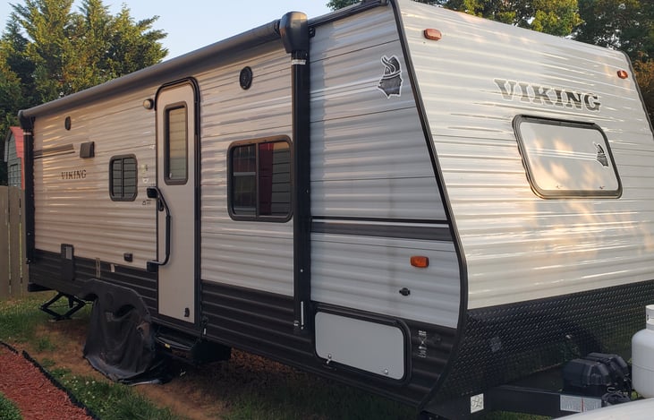 2018 Viking 21bh. Pet and kid friendly. This bunkhouse sleep 6 total but more like 5 comfortably. 2 bunks in the rear for the kiddos, table folds down to sleep 2, the queen bed. Kitchen has fridge and freezer and plenty of storage in the pantry, 3 gas cooking eyes and a microwave. This unit has a 40 gallon fresh water tank and 6 gallon gas water heater.