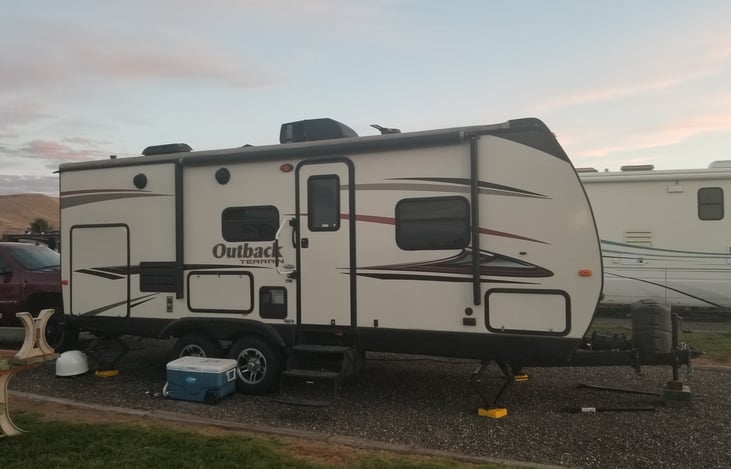 Clean, comfortable trailer. Has a slide out. Sleeps 4 people. Easy set up. 5180 dry weight. Pick up and drop off times are negotiable.If you have any questions please feel free to email me. Thanks for looking. Happy camping
