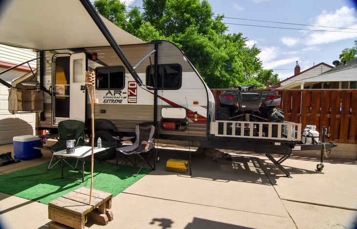 Begin your adventure by choosing to use this fun, spacious, new and clean Starcraft Extreme camper, which also serves as a toy hauler. Head off to the hills with confidence; the Starcraft provides high clearance, light and easy towing travel for even the newest RVer! It is easily pulled with a half ton, short bed truck.