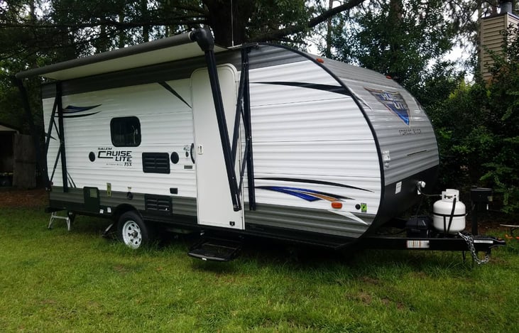 Beautiful RVs for rent. This brand new 2018 Salem Cruise Lite is ideal for tailgating, family vacation, or a weekend away. It is loaded to the brim and sleeps up 6, and even has an outdoor lightning and an outdoor sound system!