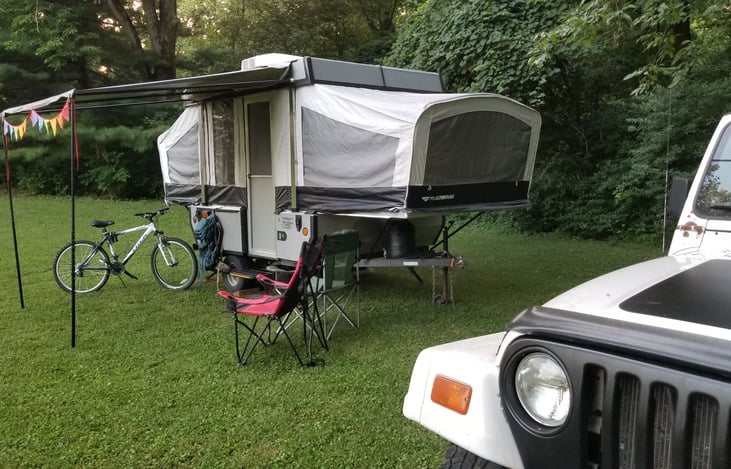 There is nothing like camping in a pop up camper! You are off the ground, sleeping on a real bed with AC available, but still separated from mother nature by the canvas.