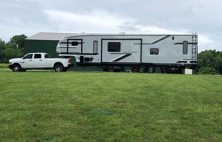 43 ft toy hauler sleeps 7 has 2 slides I can haul and park it anywhere you need has a 16 ft garage also