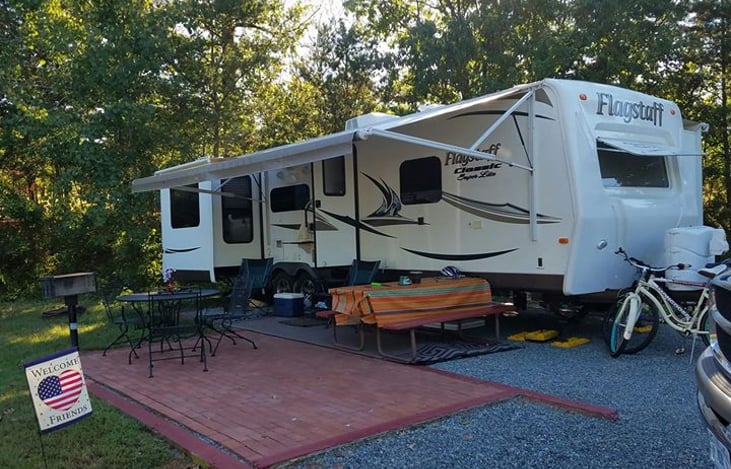 Our camper is our little home away from home. We love being outside but if it's a rainy day the camper is very comfortable. The Kitchen is fully stocked with dishes, pots, pans, silverware and utensils. We provide linens, towels and wash clothes and a supply of RV friendly toilet paper.