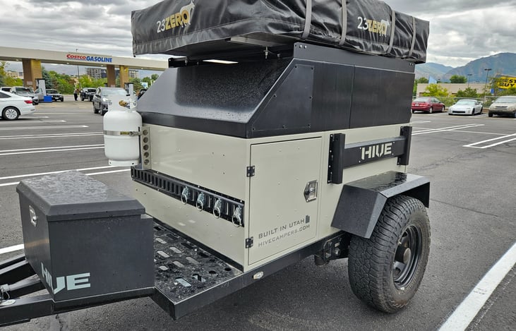 Go anywhere with this well built Overland Trailer by Hive with a comfy and roomy 3 person fold out rooftop tent by 23Zero.