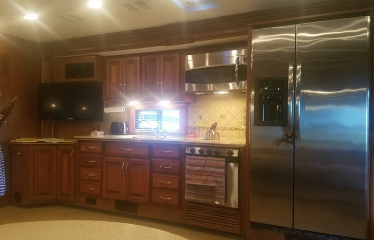 Looking to go down the road in luxury and style? Relax on butter soft leather couches in your home away from home. Bunk house, pull out couch and king size bed, comfortably sleeps your whole family (and friends). Washer and dryer, full size fridge, oven, and large shower. Much cleaner and safer than a hotel. RV delivery and set-up for an additional charge. Car dolly available