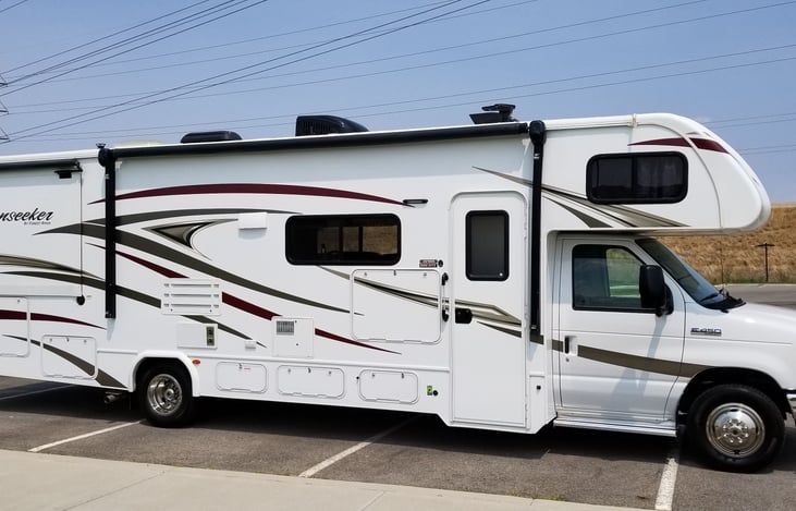 A vacation home on wheels! This is a class C motorhome in very new condition. Sleeps 6, with a queen bed master suite, in the back. The Sunseeker 3010DS has 2 slide-outs to provide a roomy interior, a Large Double Door fridge, with a large freezer with ice maker. 3 TV's - one in the living area, the master suite and one outdoor TV.