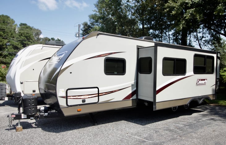 31 foot travel trailer sleeps 9 comfortably, electric panel to open super slide, canopy, turn on lights, and check tanks. Fully stocked with bed linens for 3 full size beds, towels/beach towels, toiletries, pots, pans, crock pot, cups, dishes, silverware, coffee maker, and cleaning supplies.
