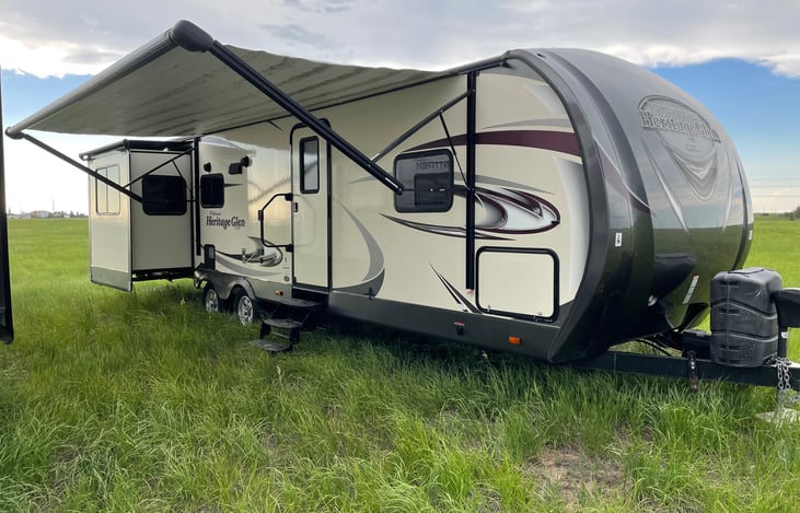 Jarryd’s home away from home camper rental. 35 ft bumper pull camper rear entertainment center with two real lazy boy recliners!!! Oversized a/c unit and fridge. Working fireplace(when plugged in) big shower, camper queen bed in front room, couch and table fold to beds as well. Power front hitch jack, power stabilizer jacks, power awning.