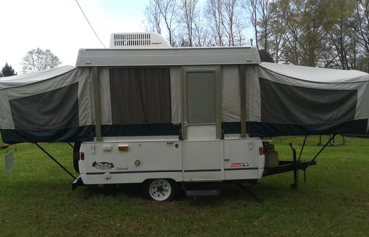THIS CAMPER TRAILER FEATURES A FRONT KING SIZE BED WITH OPTIONAL MEMORY FOAM MATRESS UPGRADE, A DINETTE THAT CONVERTS TO A DOUBLE AND A REAR QUEEN SIZE BED. THIS UNIT WILL SLEEP 6 PEOPLE COMFORTABLY, BUT THE COLEMAN WEB SITE STATES 7 PEOPLE. THE ROOF TOP A/C UNIT IS A COLEMAN AND BLOWS ICE COLD. THERE IS ALSO A INDOOR/OUTDOOR 2 BURNER GAS COOKTOP THAT IS IN GREAT CONDITION.