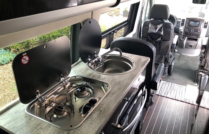 Easy to drive, set up, and enjoy the wonderful Central Coast of California in Airstream Luxury combined with Mercedes Benz reliability. The coach is GLAMPING at its finest. Two burner stove, kitchen sink, fridge with small freezer, shower and toilet, oversized automatic King Bed in rear, seats 9 comfortably going down the road.