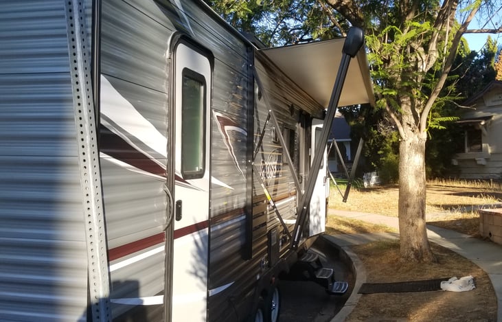 Family owned travel trailer. Kid friendly with dvd player and 2 smart tv's. One tv in master bedroom and other in living room. Large slide out offers a lot of extra room. Central a/c and heat with digital thermostat. Inverter in bedroom for off-grid camping. Separate entrance to bathroom from outside. Bath tub for kids to enjoy.