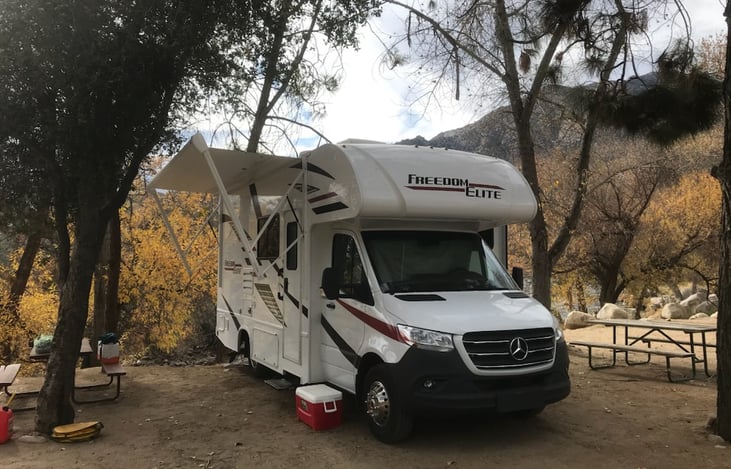 2020 Freedom Elite! We can pick you up at LAX or deliver anywhere in Los Angeles area. Or If you are planning on camping in the Kern River Valley, we can set up the RV at any campground in the KRV. So you just show up to the campground and everything is set up for you at no additional charge. We also include pick up for clients flying into Bakersfield.