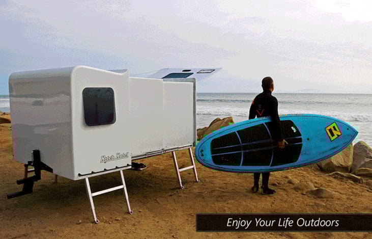 The Hitch Hotel is the “World’s First Expandable Wheel-less Trailer." This amazing travel trailer can work with any vehicle with a Class 3 trailer hitch and can go just about anywhere!