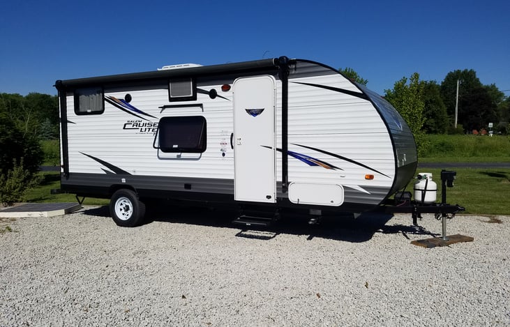 This is a 2017 Salem Cruise Lite 176 BH Comfortably sleeps 5. Queen bed in the front that folds up to use the sofa below, two bunks in the back and the dinette converts to a bed. The trailer is lightweight and easily tow-able by a 1/2 ton. Bedding, towels, pots/pans, plates/bowls and kitchen utensils are included.