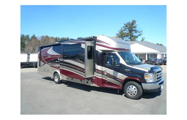 Ready for the 2021 camping season this is very nice and clean 2014 Coachman Concord 300TS class C Ford F450 with rear queen bed slide, split bath, side sofa slide out, side dinette slide out, front high back passenger and driver seats, outdoor television and passenger seatbelts.