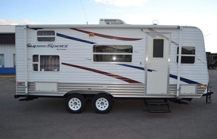 2011, 19' bumper pull In great shape. Fully stocked with linens, dishes, cookware, utensils, etc. Roof-mounted AC, freshwater tank and battery power. TV/Audio system. No slide outs, so it's quite light and tows easily. As shown in the layout photo, there are 4 beds. The bunk in the rear, and the table bed sleep a single (or two small children on the table bed).