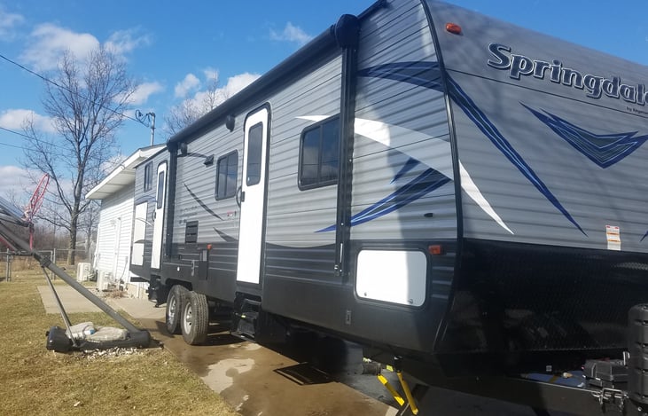 Beautiful 2018 Keystone Springdale Summerland series 3030 bunkhouse. Easily sleeps 10 with two slide outs, electric power awning, outdoor entertainment, and much more.