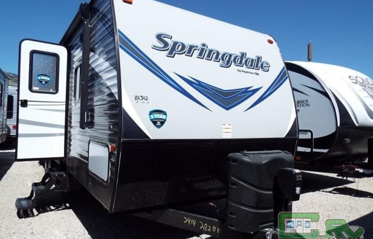 2019 Springdale 282BH. This unit has lots of room for the family, 2 double bunks, queen bed, a rear bathroom with an entry door. Tons of outsides storage.