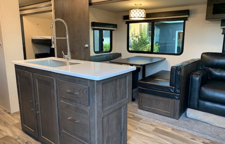 We have 2018 Forest River Heritage Glen 300BH. Travel trailer has 3 slide outs!! Perfect for families with children. Bunk house sleeps 3 easily and has hook ups for a second TV. Main living room also has 2 slide outs. One in each side of the trailer to allow for a very wide and spacious living area. Oversized refrigerator works on both propane and electric.