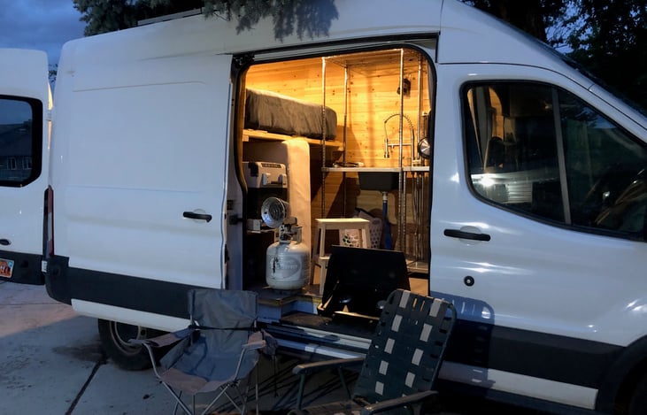 This van is a beast! Drives great and can handle mountainous roads & high winds. There was cooking supplies, full propane, solar panels & water; all the essentials if off-grid for a night. Bit of a home-built van but as a single traveller, the van's quirks gave it character. Great option for a more affordable budget.