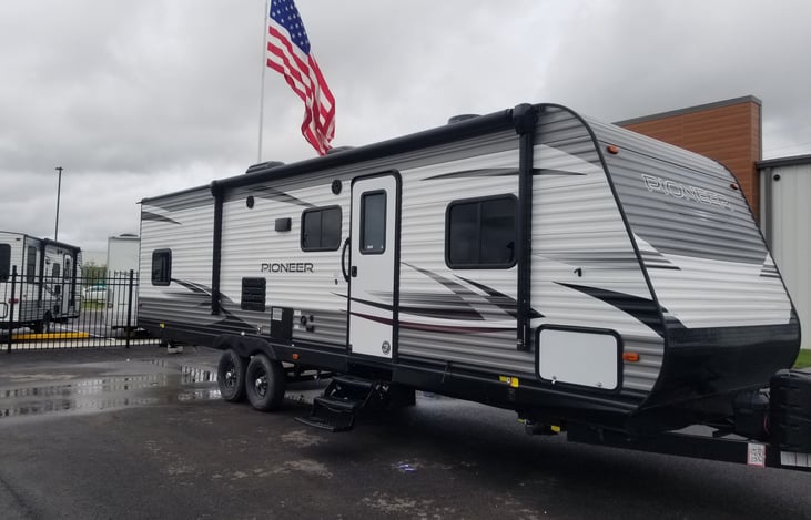 Newly decorated Minnie & Minnie bunk room for the kids!!! Very roomy travel trailer with bunk house. Easy to setup and operate with electric jacks. Sleeping arrangements include bunk house with 4 beds, sofa makes a bed, table makes a bed and full size master bed. Easily sleeps 9. We deliver further for a fee depending where. Below is a video of the interior until I can add photos.