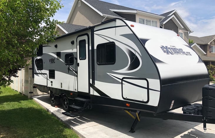 2018 Forest River Vibe. Modern and spacious with dual bunk beds and nice finishes make this a great family get-away! Setup is super easy with a remote control for the stabilizers, lights, and awning. The trailer is equipped with a 48in TV, DVD player, and BlueTooth stereo with outdoor speakers to entertain the family.