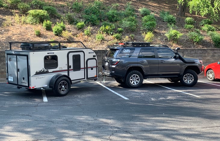 Our camper is lightweight (1400 lb, all aluminum assembly) so it’s easily towed by most vehicles and is a manageable size for any driver new to pulling a trailer!