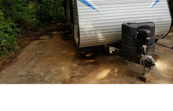 Parked in driveway. With electricity, and water, no sewer. Private bathroom in the house. Trailer bathroom off limits due to no sewer hookup. We love our trailer and hope you will to. Near UGA and downtown athens!
