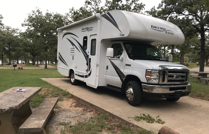 This 2018 Thor Freedom Elite is easy to drive and doesn't require any special training. Setup and take down is simple and can be done in a matter of minutes. Essentials like cookware, bedding, toilet paper are provided. It can sleep four adults comfortably and has four seat belts.