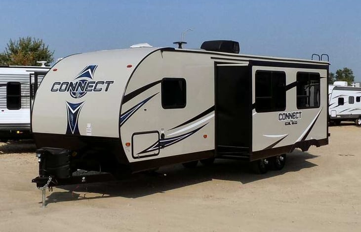 Cozy 28 foot RV design for family fun. The KZ connect can comfortably sleep 6 and a max of 10 occupants. The RV is great for spending time in the out doors and can stay cozy inside with 2 air conditioners and all room heating system.